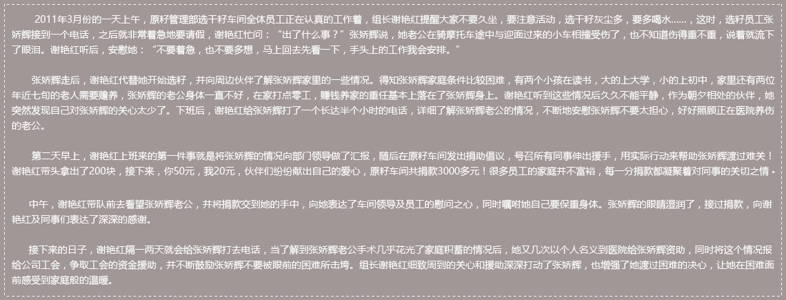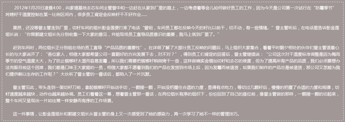 隨時隨地都能懷有一顆關心和愛護下屬和同事的心,讓下屬和同事感受到公司和領導對員工的那份關切之情,讓他們的幸福感油然而生,并由此向其他地方傳遞。
