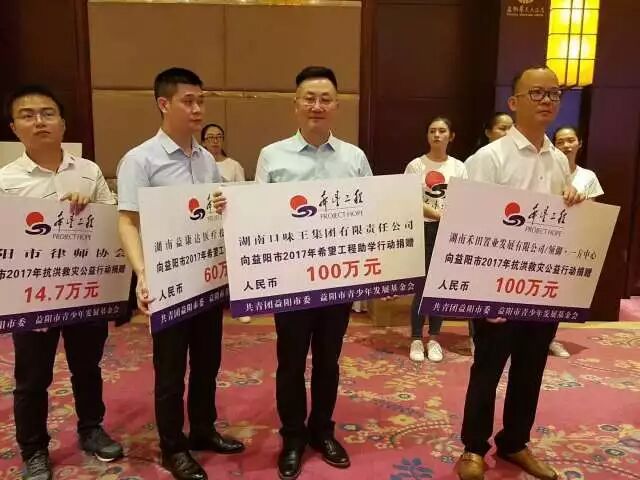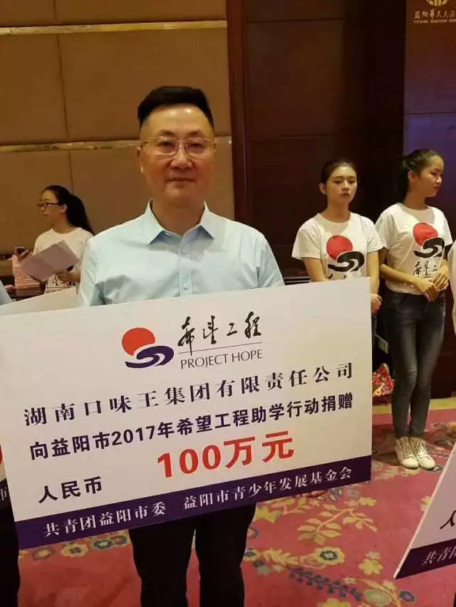本網(wǎng)訊 劉建輝、石靜報道:8月30日,益陽市脫貧攻堅大型公益行動暨2017年“希望工程•抗洪救災”助學儀式舉行,共青團湖南省委副書記仇怡和市領導王剛強、劉國龍、黃仲書出席活動,湖南口味王集團總裁陳義先生參加儀式并代表公司為益陽市希望工程助學行動捐資100萬元。